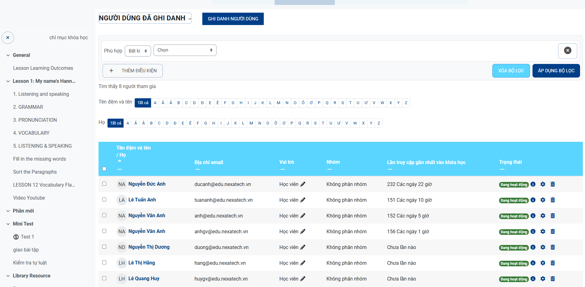 Các công cụ thảo luận trực tuyến, bài tập tương tác, và các bài kiểm tra giúp nâng cao hiệu quả học tập.