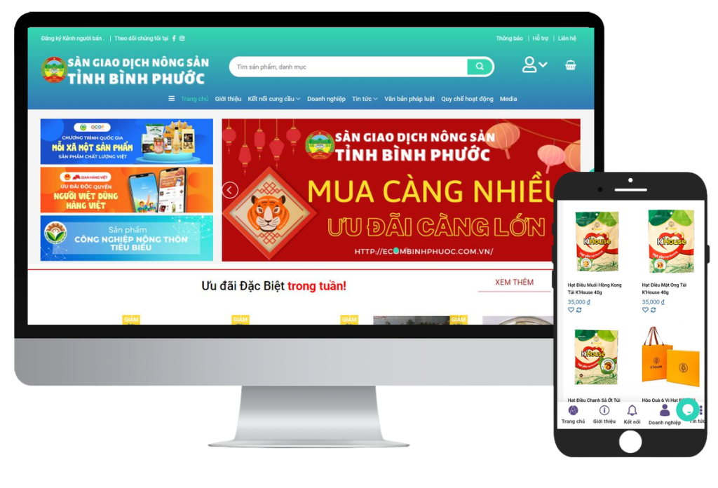 Sàn thương mại điện tử Bình Phước là nền tảng kết nối giữa doanh nghiệp, hợp tác xã, hộ sản xuất và người tiêu dùng trong và ngoài tỉnh. Giải pháp này giúp thúc đẩy quá trình chuyển đổi số trong lĩnh vực kinh doanh, đặc biệt là đối với các sản phẩm đặc trưng, nông sản, hàng thủ công mỹ nghệ, và dịch vụ địa phương.